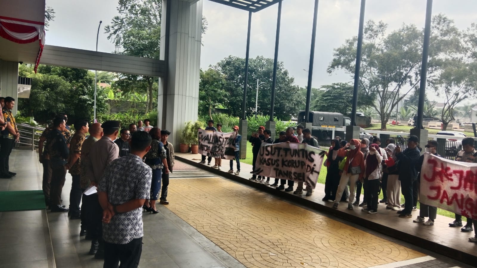 Menanggapi aksi tersebut, Apsari Dewi SH.LL.M., Ph.D kepala kejaksaan negeri Tangsel turun langsung temui massa aksi. Ia menyayangkan, penyampaian aspirasi mahasiswa tanpa disertai bukti pendukung.