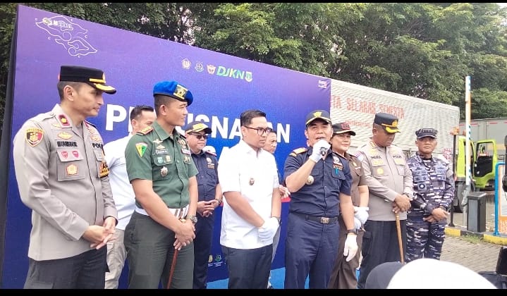 Tangseloke.com —Operasi Gurita Bea Cukai Banten berhasil menggagalkan peredaran barang kena cukai (BKC) ilegal senilai Rp 53,76 miliar. Pemusnahan barang ilegal tersebut dilakukan secara simbolis di ICE BSD City, Tangerang, Banten.