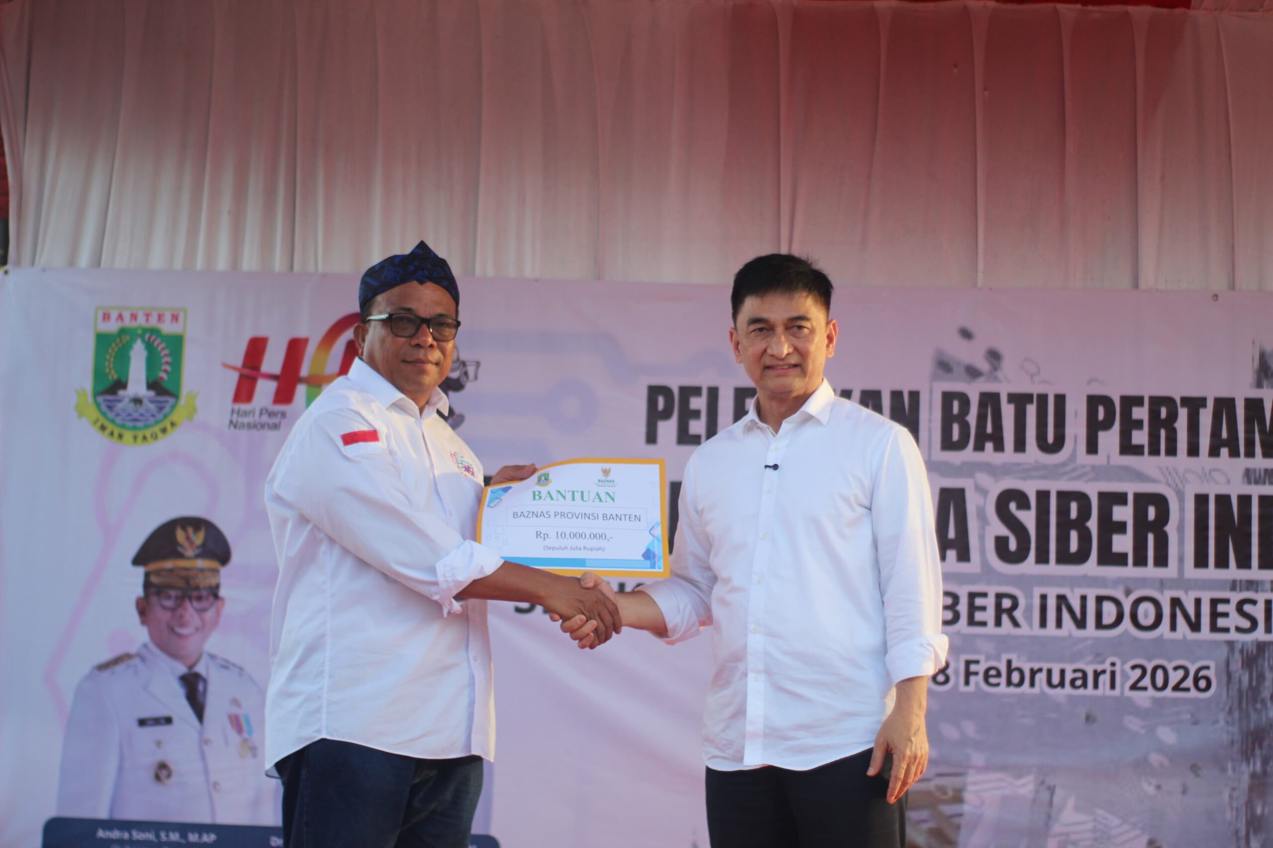 Serang – Pembangunan Museum Media Siber Indonesia di Karundang, Kota Serang, mendapat dukungan nyata sejak peletakan batu pertama dilakukan. Ketua Serikat Media Siber Indonesia (SMSI) Provinsi Banten, Lesman Bangun, secara khusus menyampaikan apresiasi dan terima kasih atas bantuan dana awal senilai Rp 10.000.000 yang diberikan langsung oleh Wakil Gubernur Banten, Dimyati Natakusumah, Minggu (8/2/2026).